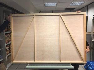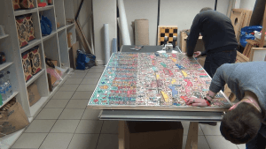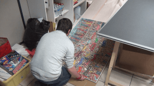 Une fois le puzzle sur son carton, nous avons pu solidifier le support pour qu’il reste rigide même sous le poids du puzzle.