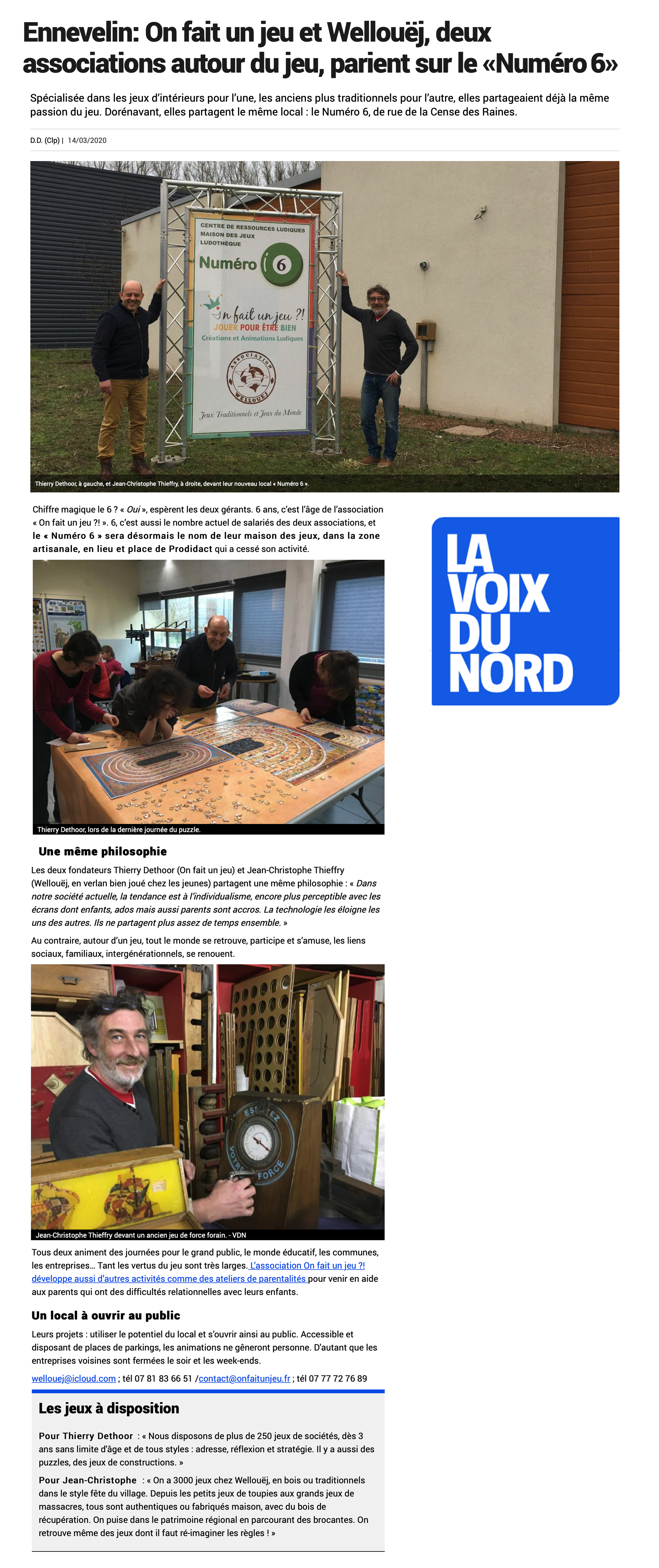 Voici les liens des articles que la Voix du Nord a rédigé, merci à eux