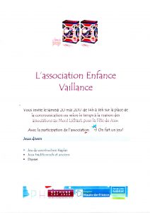 Samedi 20 mai l’association Enfance Vaillance de Béthune organise la fête mondiale du jeu de 14h à 18h.