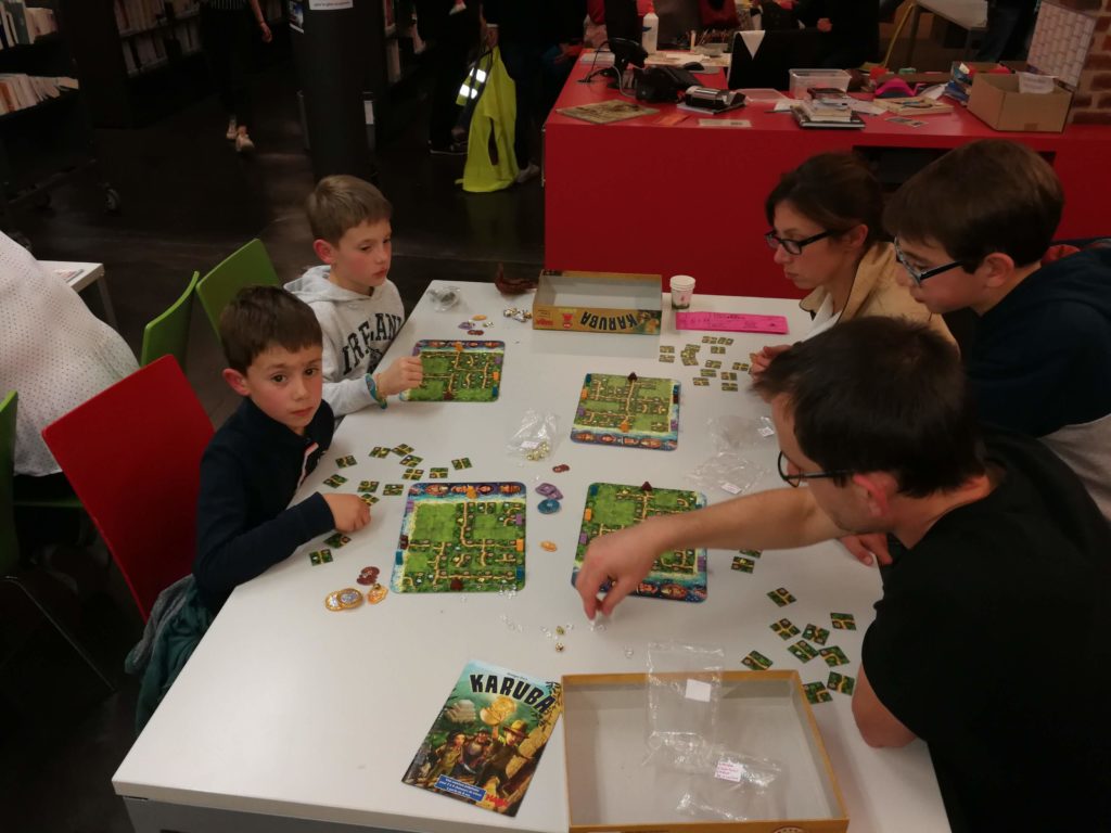 Nous sommes arrivés avec nos caisses de jeux avec des ambiances sur le voyage, du monde fantastique ! Près de 110 à 140 joueurs de tout âge étaient heureux de jouer en famille, à découvrir de nouveaux jeux de société. A peine les joueurs arrivés, nous étions partis sur les différentes explications de règle et sur les conseils du choix des jeux de société.