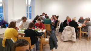 Les deux salles étaient pleines à craquer de jeux et de joueurs. De nouveaux liens ont pu être tissés grâce aux jeux de coopération (Saboteur). Mais aussi des liens intergénérationnels ! Les plus jeunes se mêlent à la sagesse et aux parties de rigolades de nos seniors. Un bel exemple de tranche de vie pour ces petits jeunes !