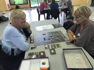 Nous avons ouvert les portes de la salle de la Clairière plutôt dans l’après-midi pour permettre à nos adhérents de venir tester les nouveaux jeux reçus à l’asso. Et oui une gros carton de jeux nous avait été livré la veille.